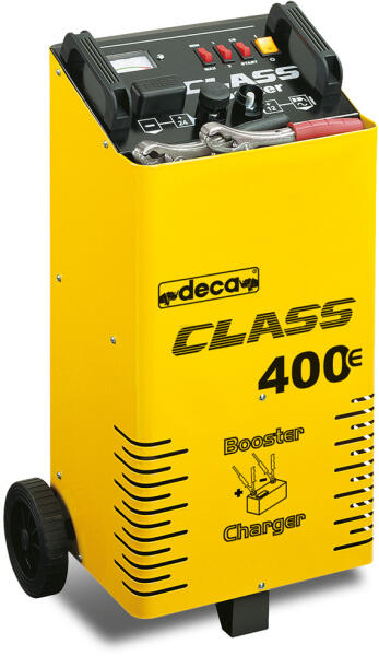 Deca CLASS Booster 400E - Hordozható töltő 12/24V-s ólom-savas indító akkumulátorok (autó, motor) töltéséhez indításrásegítő funkcióval. Effektív töltőáram értéke 40.0A (átlag 26A) . Akkumulátor kapacitása 35-500Ah közötti. A töltő használatával meghosszabbíthatja akkumulátora élettartamát. Az indításrásegítő funkcióval beindíthatja motorkerékpárját és kisebb hengerűrtartalmű gépjárművét.
