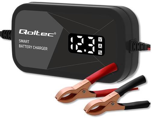 Qoltec Intelligens mikroprocesszoros akkumulátortöltő 12V | 2A | Helyreállító funkcióval AGM, GEL akkumulátorokhoz | LCD (QC-52492)