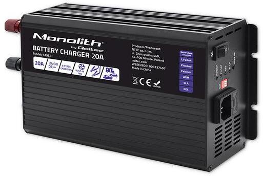 Qoltec Smart Monolith töltő LiFePO4 AGM GEL SLA akkumulátorokhoz | 20A | 24V (QC-51953)